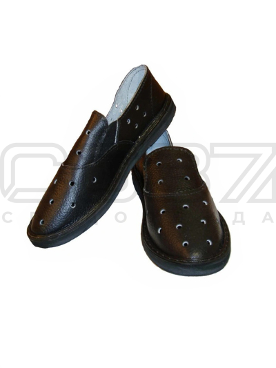 Тапочки "Подводник" нат.кожа с перфорацией подошва пористая резина цв.чёрный в Донецке
