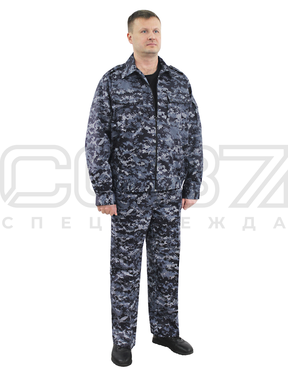 Костюм рабочий охранника "Омега" цв.цифра/синий тк.смесовая в Донецке