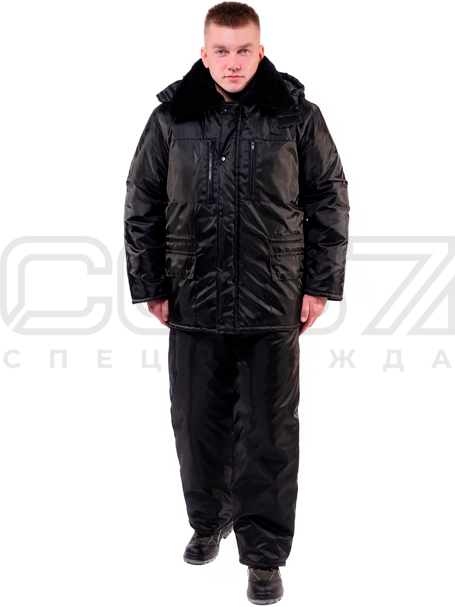 Костюм рабочий зимний охранника "Гарнизон" цв.чёрный тк.оксфорд (куртка+пк) в Донецке