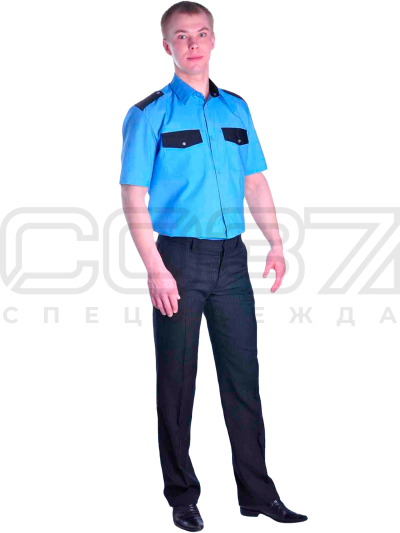 Рубашка охранника "Секьюрити" с коротким рукавом цв.голубой тк.тиси в Донецке