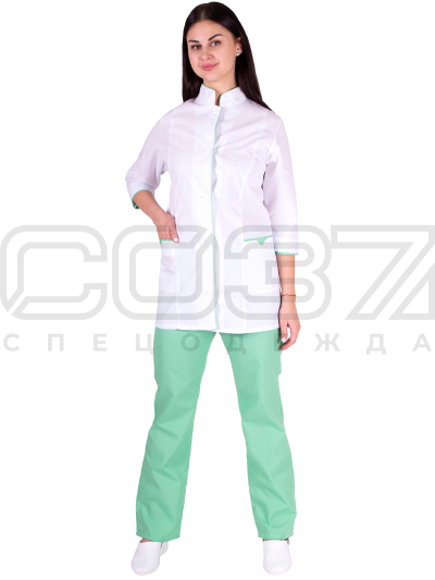 Костюм повара женский "Chef" цв.белый/зелёный тк.тиси в Донецке