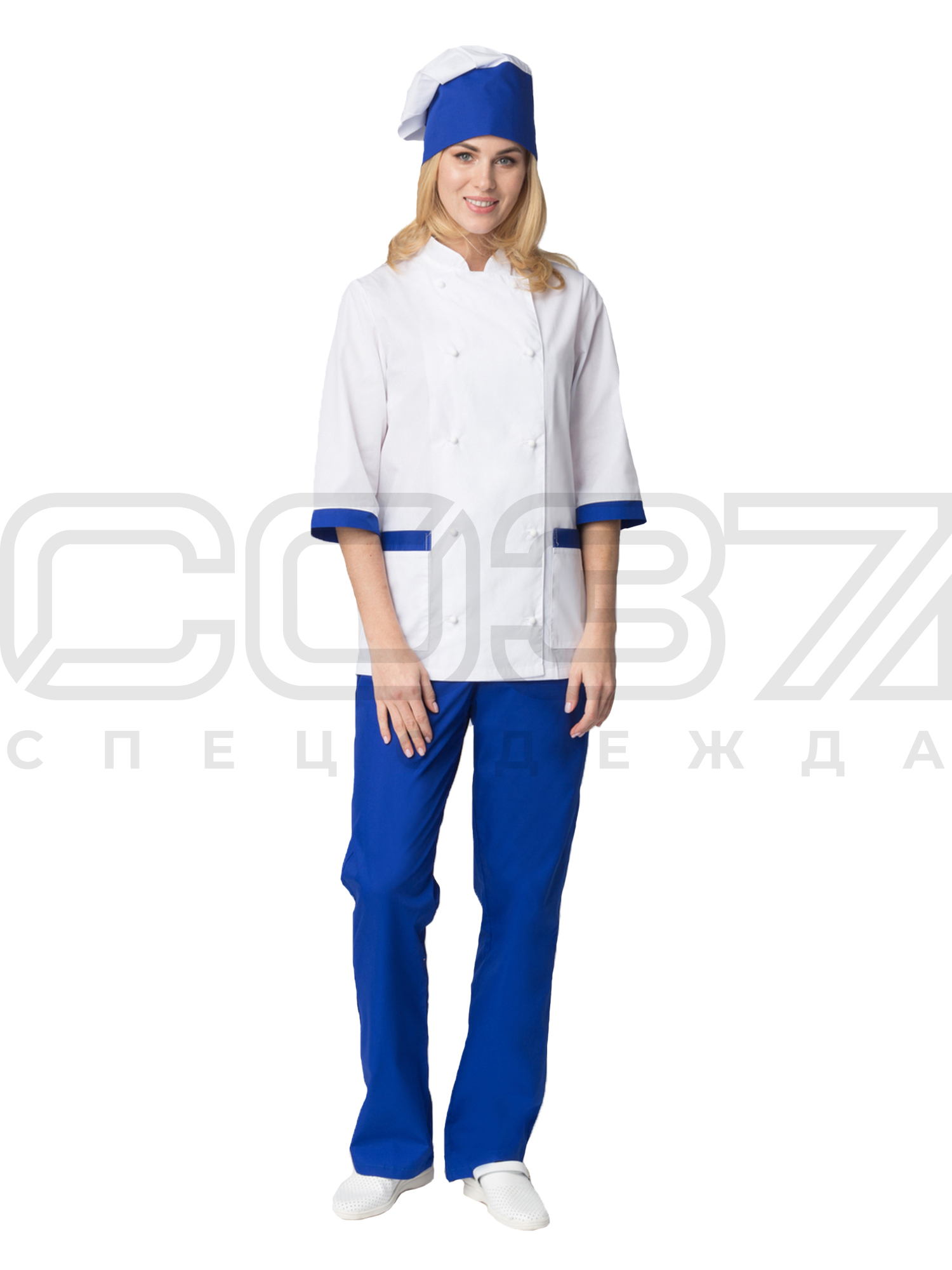 Костюм повара женский "Пралине" цв.белый/василёк тк.тиси в Донецке
