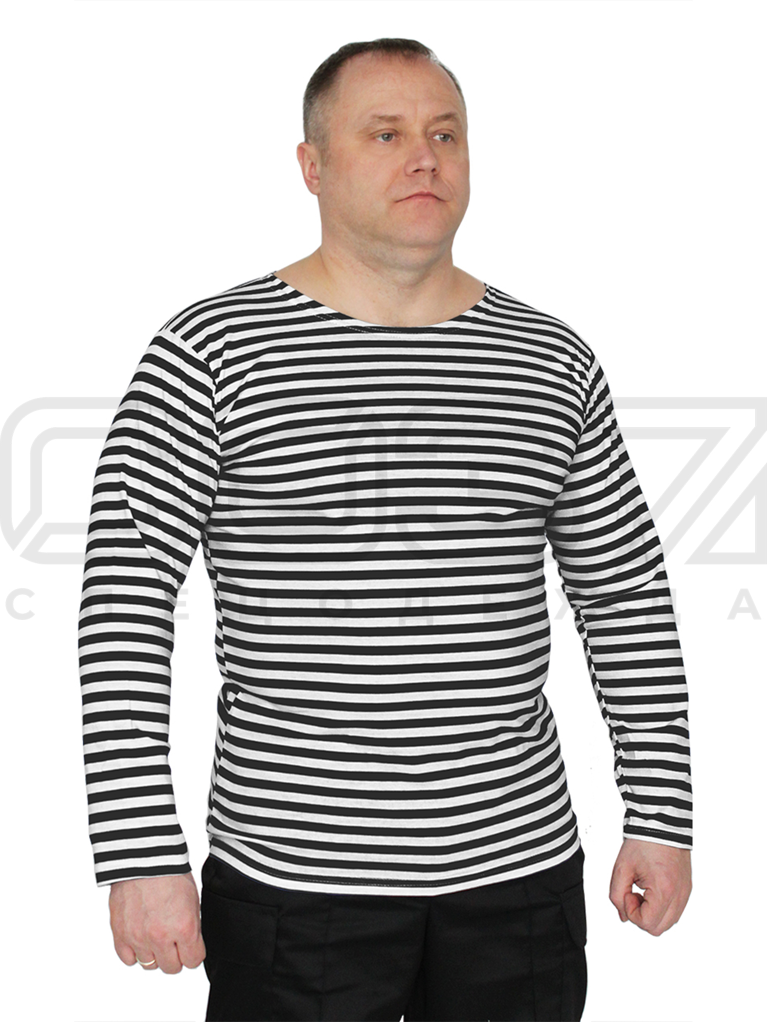 Тельняшка с длинным рукавом, чёрная полоса.