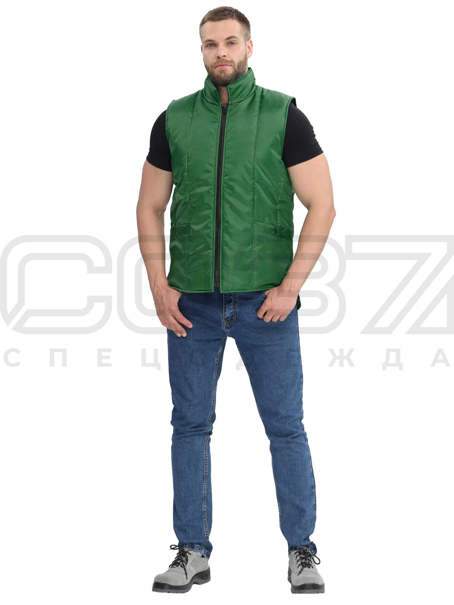 Жилет рабочий утеплённый "Базис" цв.т.зелёный тк.оксфорд в Донецке