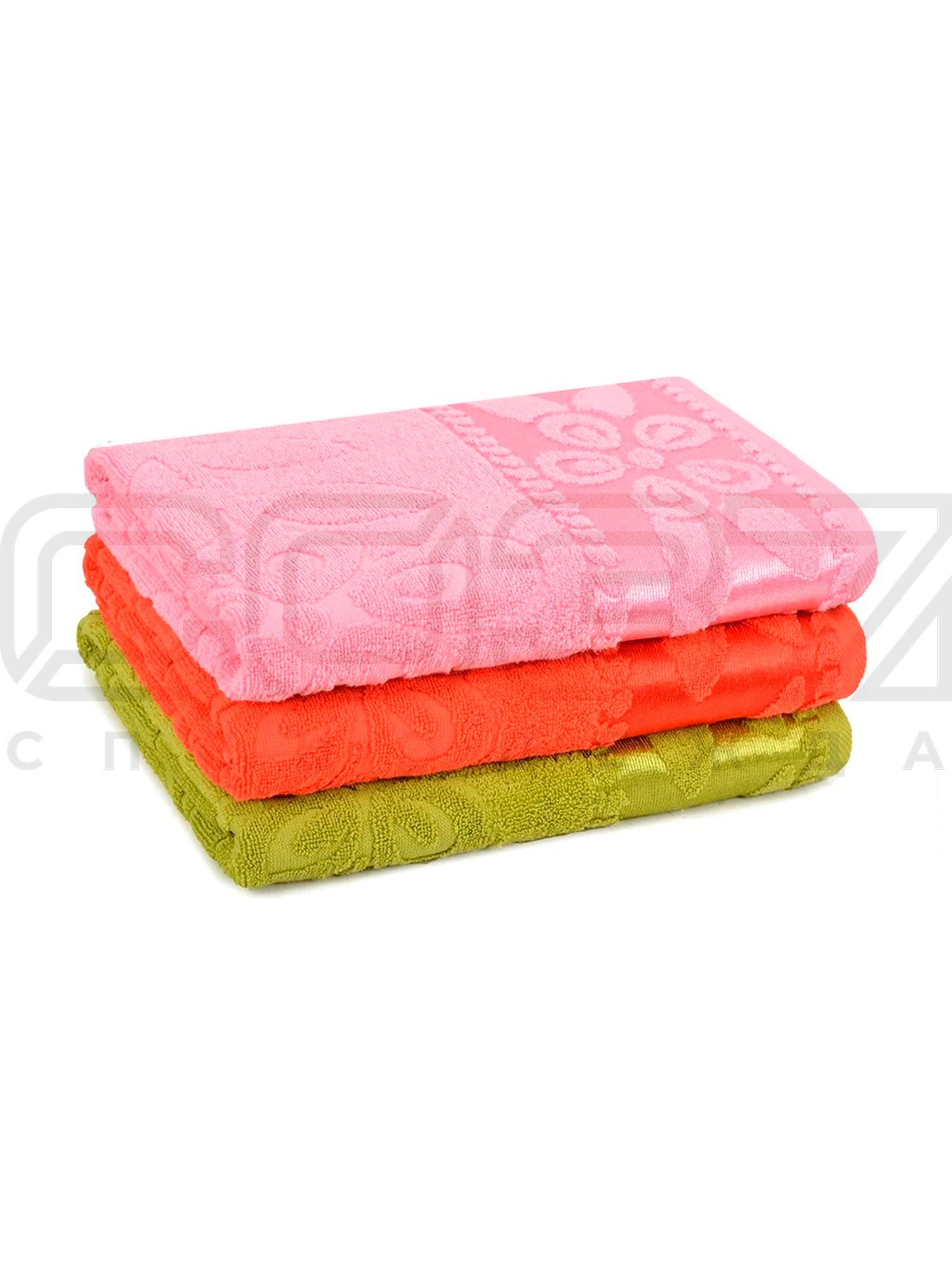 Полотенце однотонное гладкокрашенное с выбитым рисунком в структуре махры. Бордюр с добавлением вискозной нити.